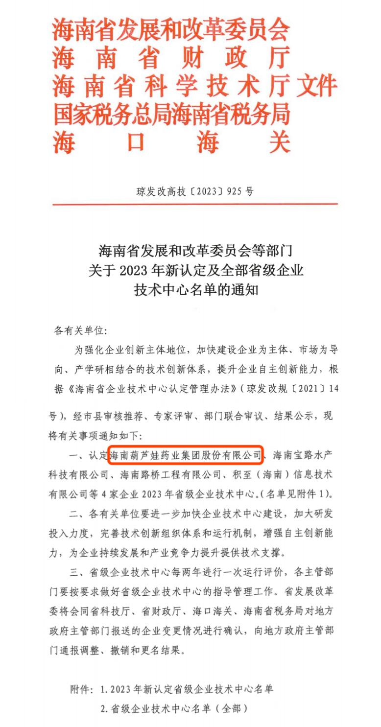 近日,海南省发改委等多部门联合公布了《关于2023年新认定及全部省级企业技术中心名单的通知》,其中,海南royal皇家88药业集团股份有限公司成功通过评审,被认定为省级企业技术中心,是本次获批的4家企业之一。
